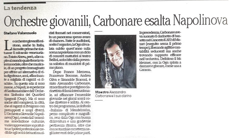 Quarto appuntamento con la grande musica al Teatro Bellini di Napoli, domenica 15 gennaio con l’Orchestra Giovanile Napolinova, fondata nel 2014 da Alfredo de Pascale, presidente dell’omonima Associazione, impegnata in un progetto chevalorizzando la musica classica ed offrendo un’alternativa altrettanto valida, se pur con un gruppo composto da giovani elementi dai 14 ai 28 anni, alla stagione sinfonica del San Carlo, evidenzia come i ragazzi dell’orchestra, allo scopo di costruire la propria esperienza artistica, investono su se stessi e sul loro talento.